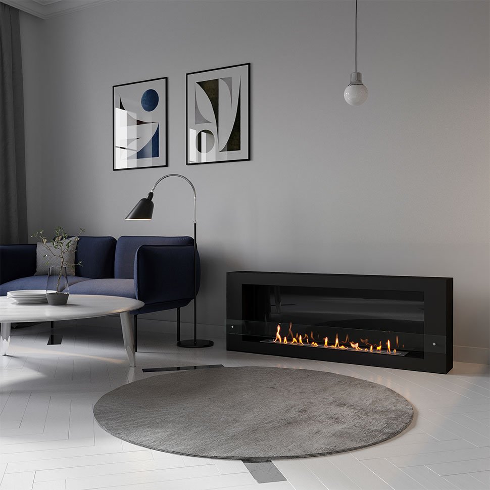 Биокамин SteelHeat WALL LONG 1500 черный, стекло